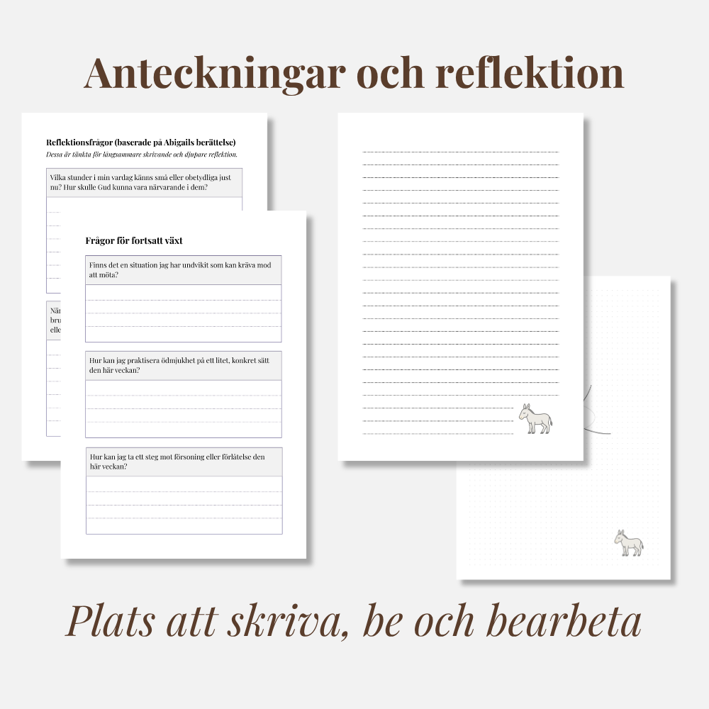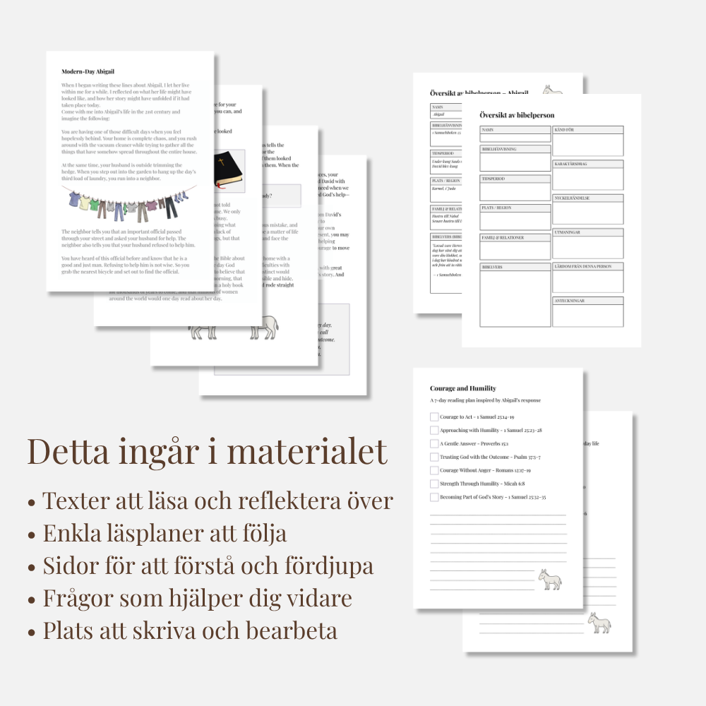 Genom Abigails berättelse får du reflektera över mod, ödmjukhet och att våga handla rätt även i svåra situationer. Materialet är utformat för att användas om och om igen, i din egen takt.