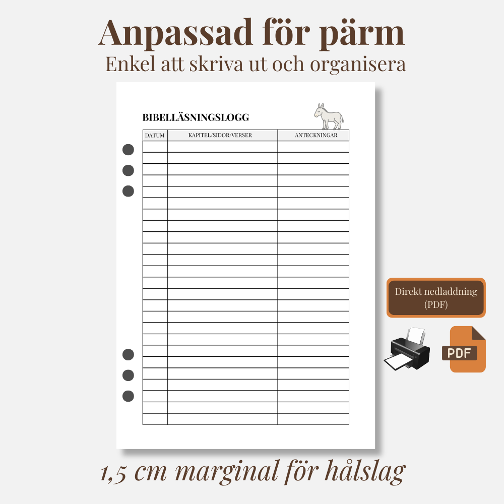 • 1,5 cm marginal runt varje sida (anpassad för hålslag och pärm)