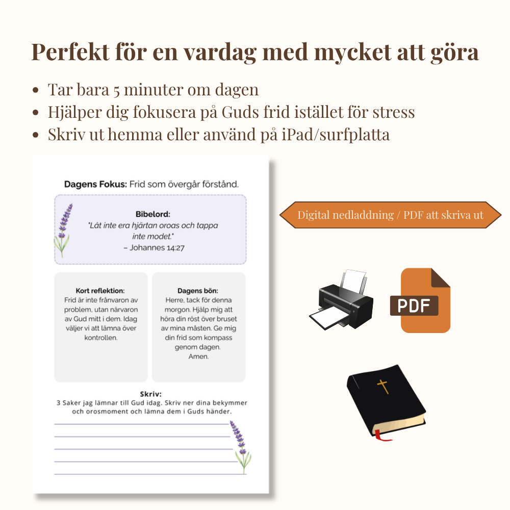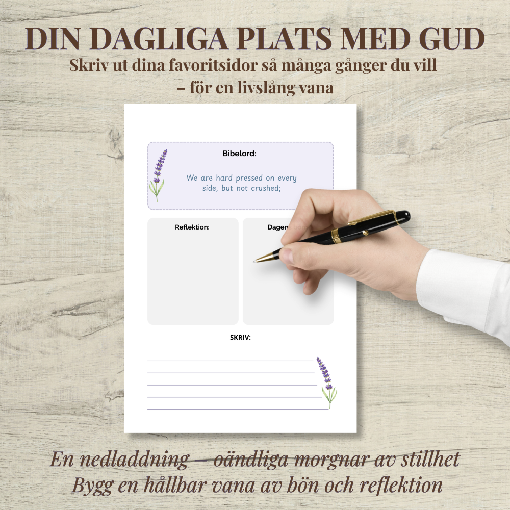 På bara några minuter om dagen får du en stilla stund för bibelord, reflektion och bön – mitt i en vanlig vardag.
